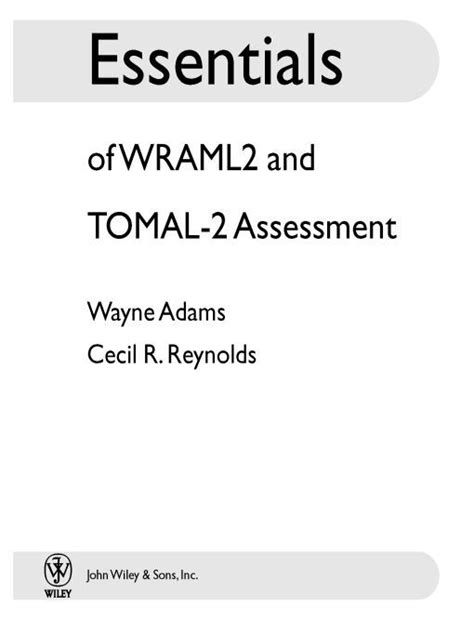 | File Name: Essentials Of Wraml2 And Tomal2 Assessment.pdf Size: 7642 KB Type: PDF, ePub, eBook |