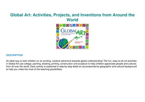 In order to read or download Global Art Activities Projects And Inventions From Around The World Book Mediafile Free File Sharing ebook, you need to create a FREE account.